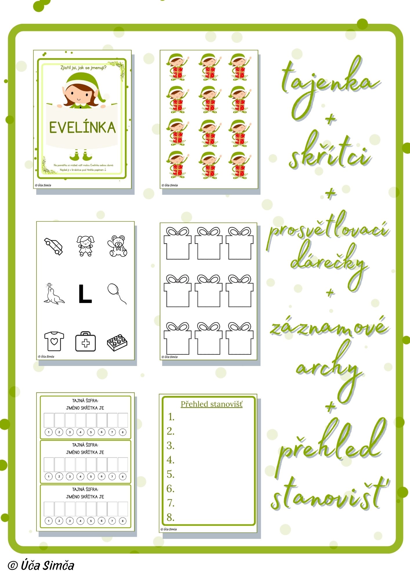 skřítci (zalaminovaní), které si děti vezmou domů z krabičky na posledním stanovišti,