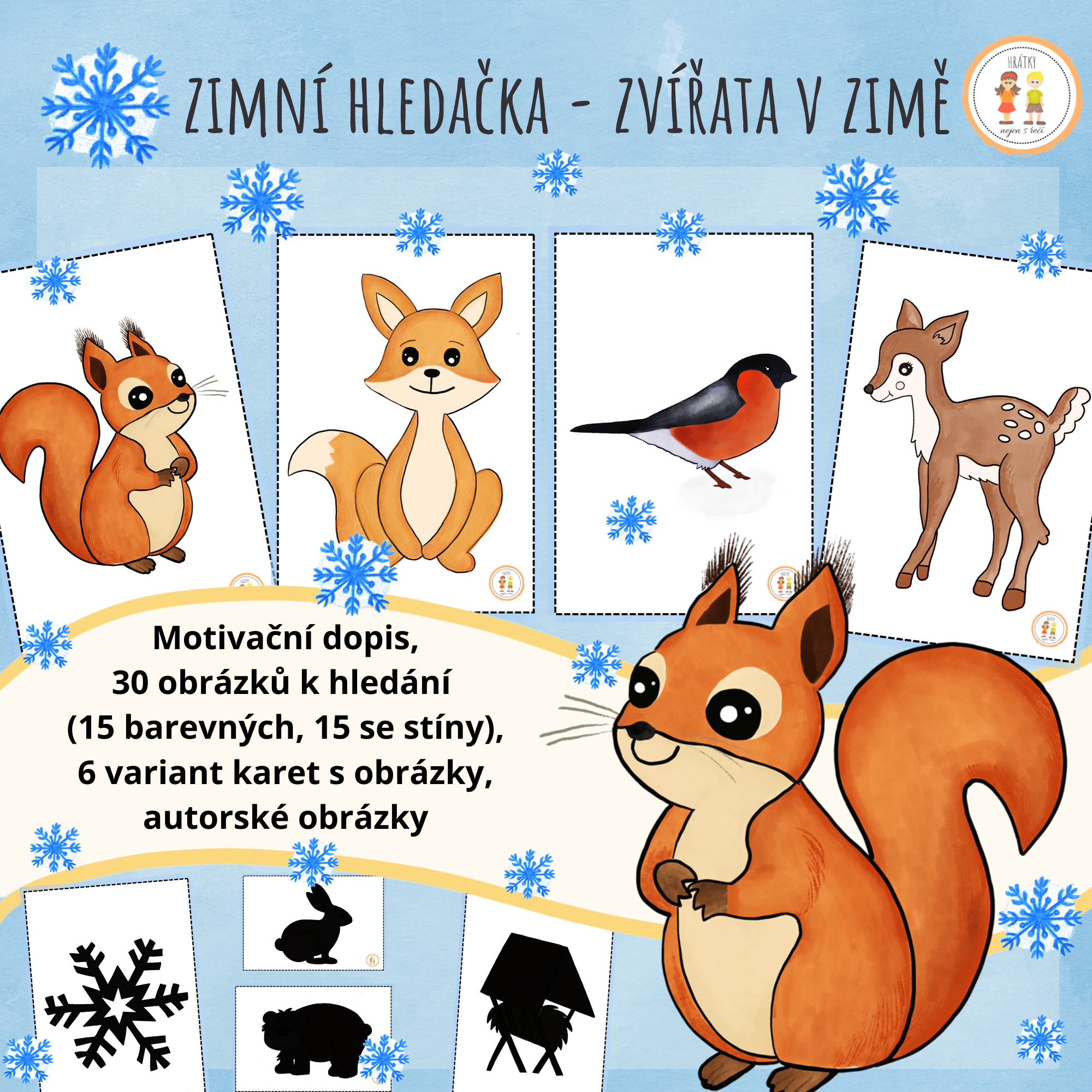 - 30 obrázků k hledání (velikost A5) - 15 barevných, 15 se stíny,