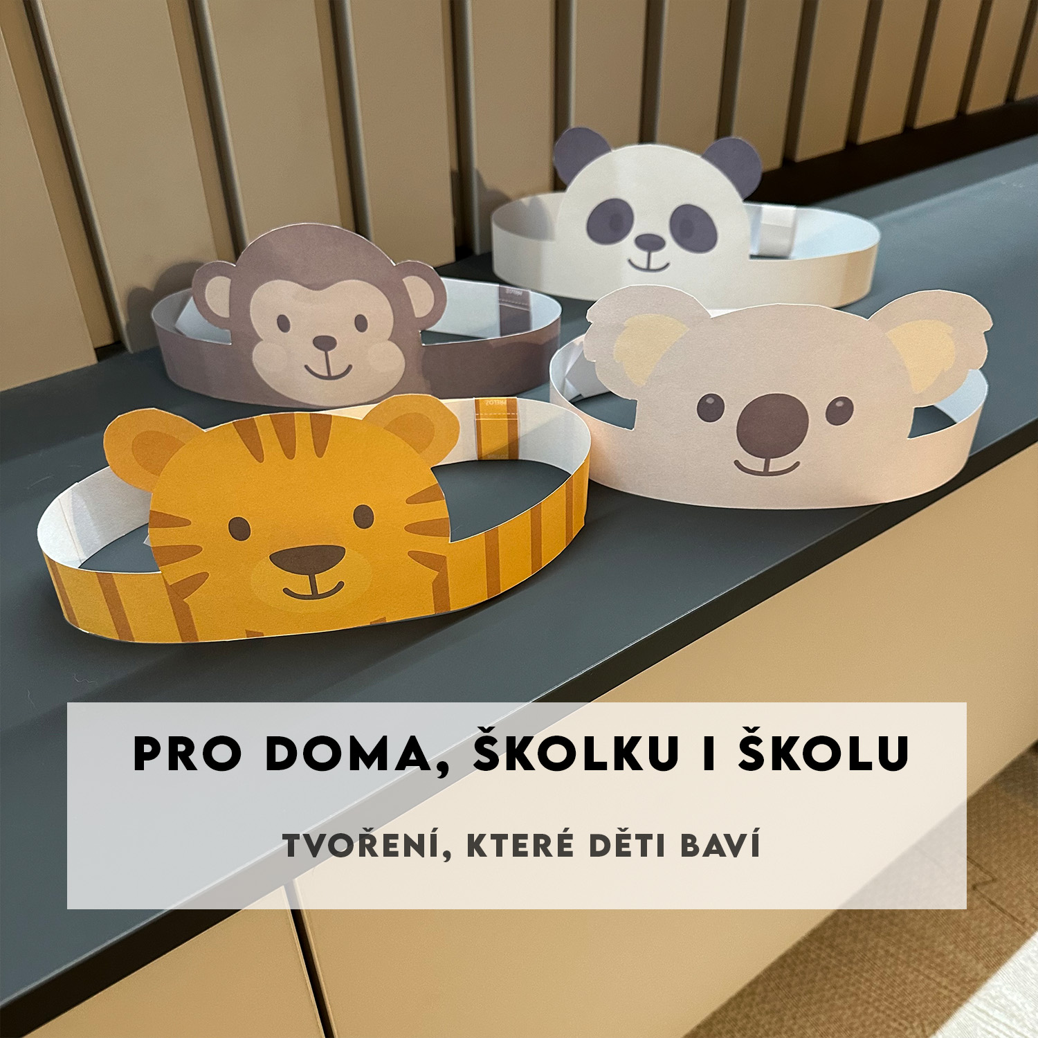 (tygr, panda, opice, koala) - 4 černobílé verze čelenek určené k vybarvení